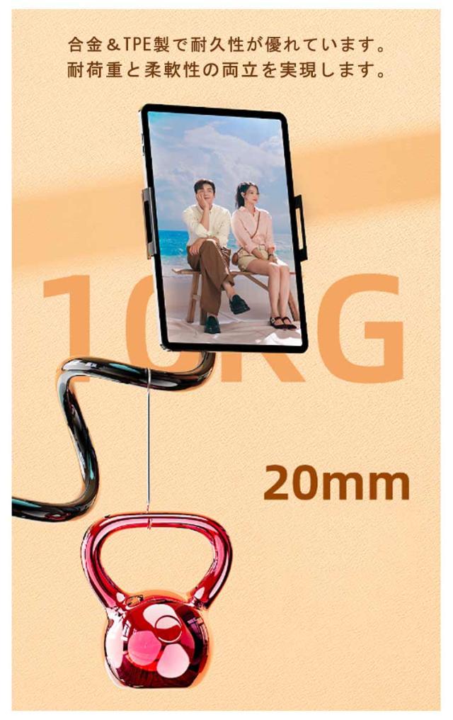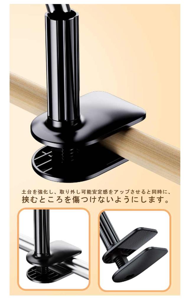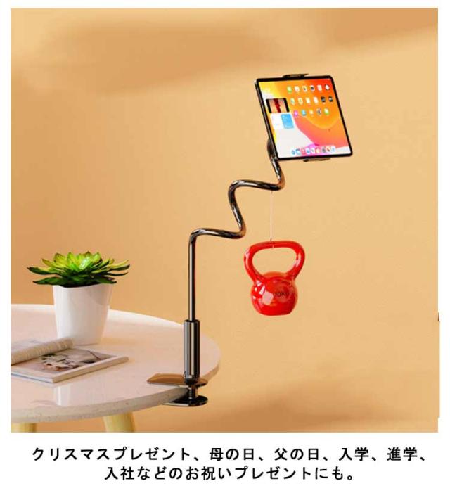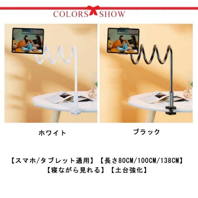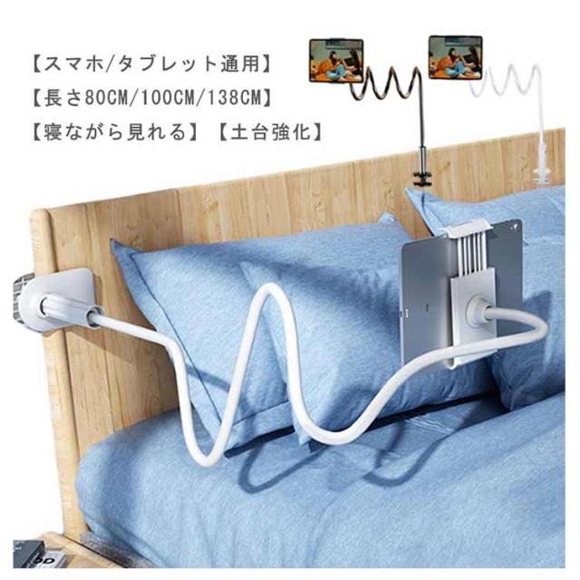 | 【スマホ/タブレット通用】【長さ80cm/100cm/138cm】【寝ながら見れる】【土台強化】 寝ながら使えるハンズフリースマホ・タブレットスタンドです。 合金&TPE製で耐久性が優れています。耐荷重と柔軟性の両立を実現します。 土台を強化し、取り外し可能安定感をアップさせると同時に、挟むところを傷つけないようにします。 スタンドアームは変形可能なフレキシブルタイプ。どんな角度にも対応します。好きな位置に調整できます。 ベッドのフレーム、エッジ・ヘッドボード・ナイトテーブル・卓上・キッチンカウンタなどにしっかりと固定できす。 長時間安定してYouTubeなどの動画視聴やZOOM会議などが楽しめます。 安定していますので長時間のお子様のお勉強、学習、キッチンでレシピを見ながらの料理などにもピッタリ。 クリスマスプレゼント、母の日、父の日、入学、進学、入社などのお祝いプレゼントにも。 充電しながら、利用可能! | |