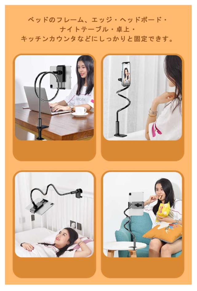 スマホスタンド スマホホルダー 寝ながら アーム スマホ アームスタンド スマホアームスタンド ベット用スマホホルダー 携帯スタンド スマートフォンスタンド 卓上 iphone ipad フレキシブル クリップ おしゃれ 角度調節 撮影 携帯スタンド