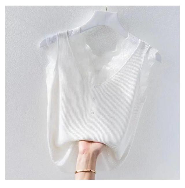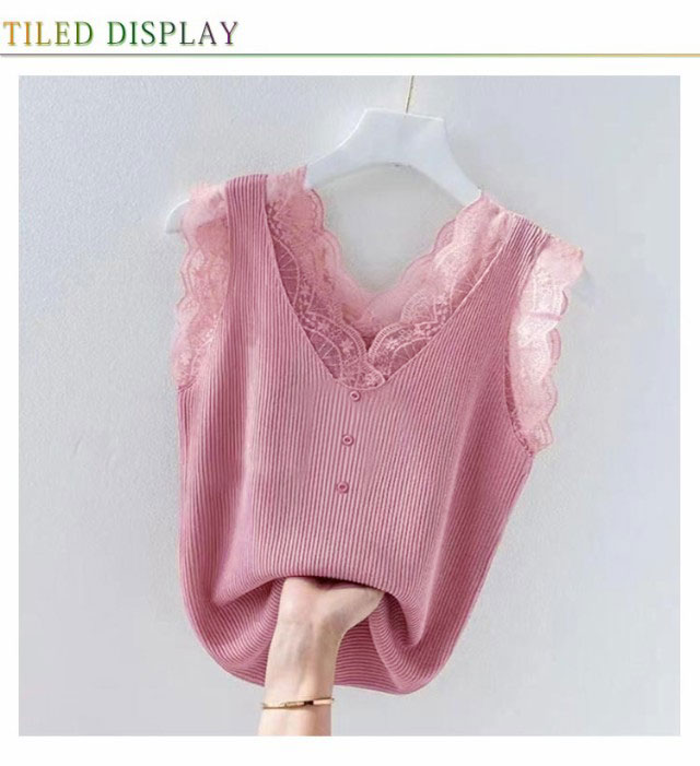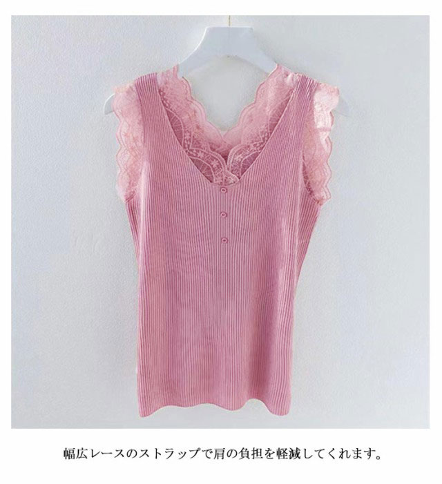 襟レース キャミソール レース サマーニット レーストップス インナー タンクトップ レディース トップス ノースリーブ vネック 肌着 シンプル 無地 薄手 シアー カットソー 着回し 春 秋 夏 夏トップス きれいめ 重ね着 送料無料