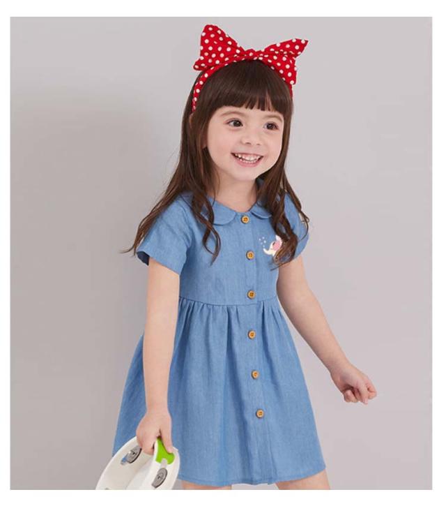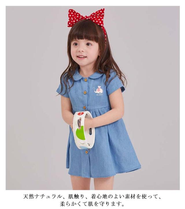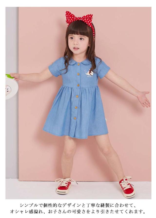 キッズ デニム ワンピース 半袖 子供服 女の子 春夏 ワンピース 綿 かわいい 襟付き 膝上丈 デニムワンピ おしゃれ 可愛い 幼稚園 保育園 通学 旅行 お出かけ 誕生日 結婚式 韓国子供服
