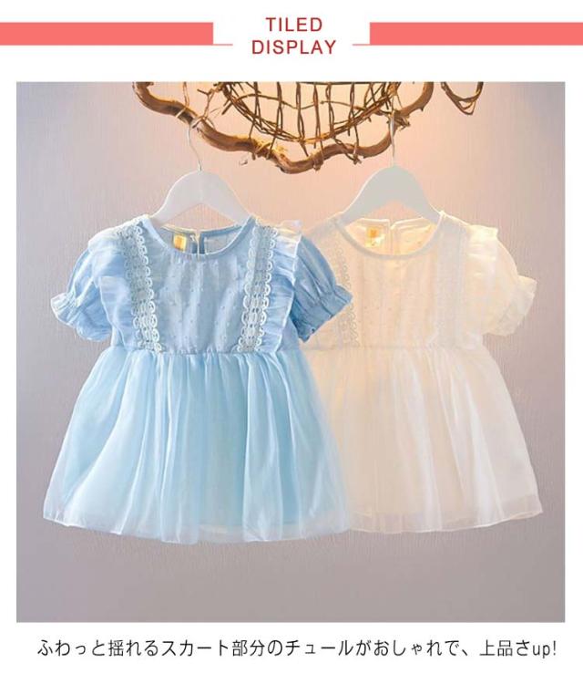 半袖 チュール ワンピース キッズ ドレス 夏 送料無料 ベビー 子供 ドレス 女の子 子供服 半袖ワンピース かわいい カジュアル ナチュラル 通園 通学 プレゼン 73 80 90 100 110
