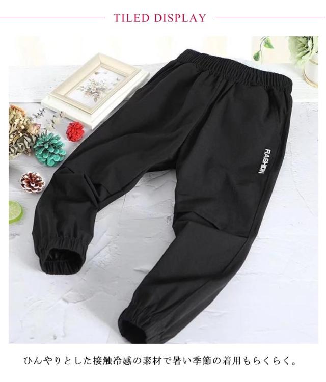 | 心地よい接触冷感素材に拘るキッズパンツ! ひんやりとした接触冷感の素材で暑い季節の着用もらくらく。 ウェストと裾が柔らかいゴムで締まって、長時間着用しても窮屈さなどは一切なく楽です。 柔らかい穿き心地とゆったりとしたシルエットも魅力的。 夏のお出かけや通園、通学、ルームウェアにぴったり! | |