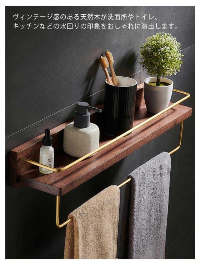 タオルハンガー タオル掛け 木製 棚付 洗面所 壁 バスタオル掛け タオル干し ヴィンテージ風 天然木 クルミ 木目 おしゃれ 北欧 タオルバー 洗面所 トイレ タオル掛けハンガー ラック 棚 小物収納 ふきん掛け キッチン収納 シンプル ナチュラル 自宅用 ホテル 美容室