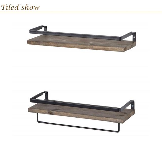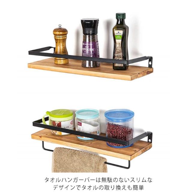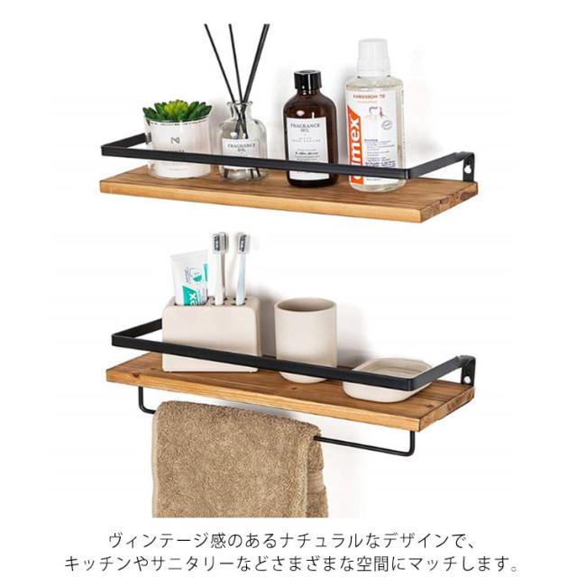 2個セット タオルハンガー ウォールシェルフ 壁 棚 飾り棚 洗面所 トイレ 壁 タオル掛け 木製 棚付 タオルホルダー 壁掛け棚 タオル掛けハンガー 天然木 アイアン ウォールラック タオルラック 小物収納 キッチン棚 おしゃれ 北欧 インテリア ヴィンテージ 簡単 設置