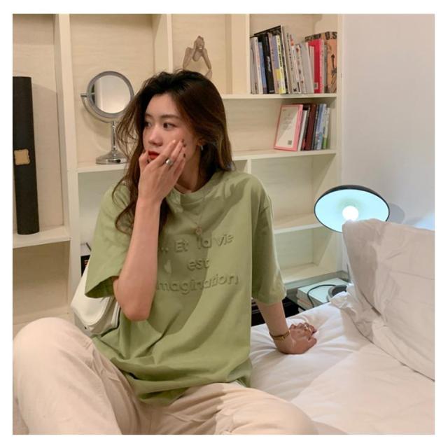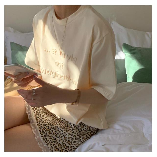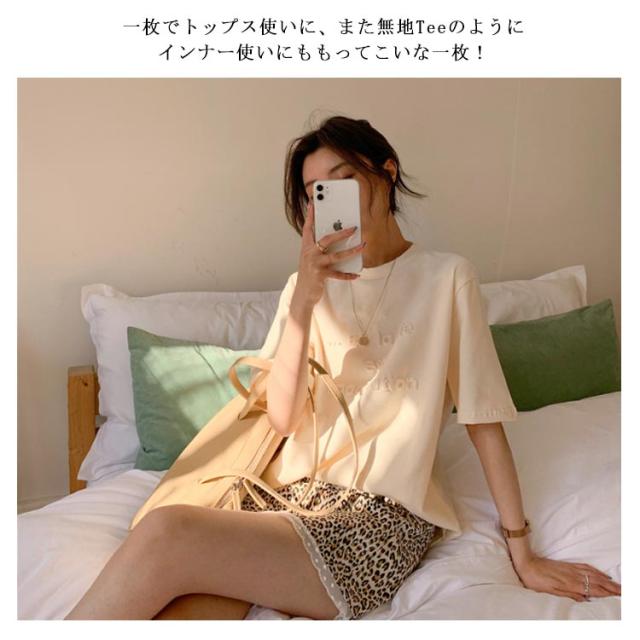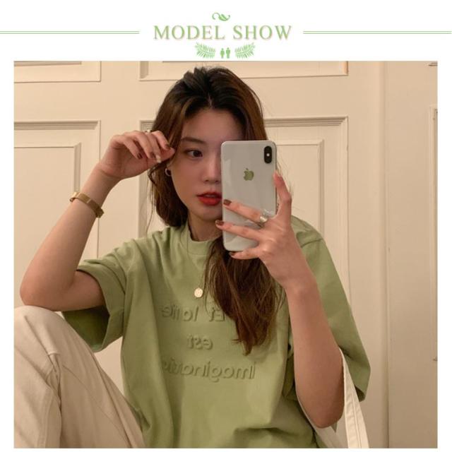 エンボス加工Tシャツ 半袖Tシャツ カットソー クルーネック エンボス ロゴ ワンポイント ドロップショルダー ロゴTシャツ プリントTシャツ 立体的な ロゴ プルオーバー 体型カバー ゆったり 夏 エンボス加工 TEE ロゴT 送料無料