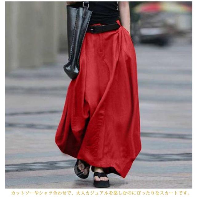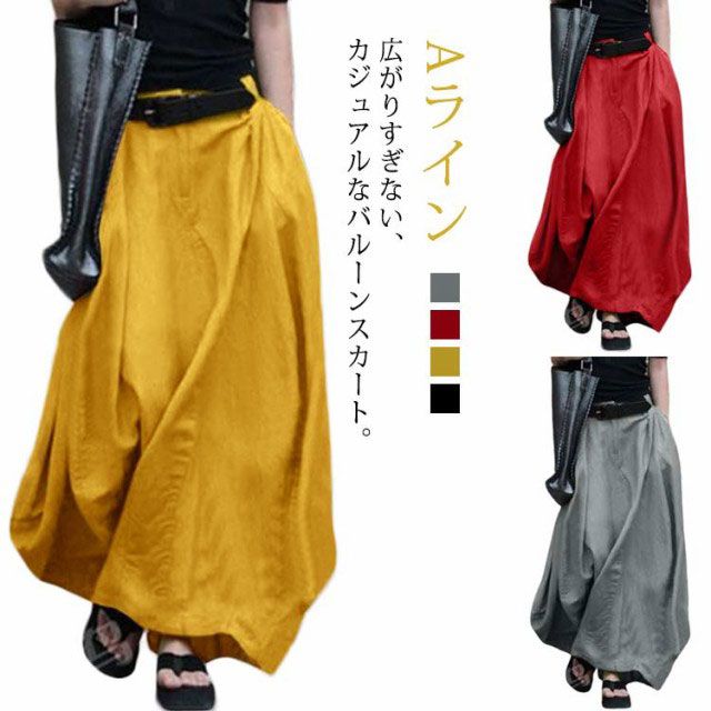 バルーンスカート レディース ロングスカート マキシスカート Aライン 体型カバー ゆったり フレアスカート ミリタリー ボトム チノ 無地 ふんわり シンプル きれいめ 大人 可愛い 着痩せ 大きいサイズ 春 夏 秋 おしゃれ カジュアル 原宿風 送料無料