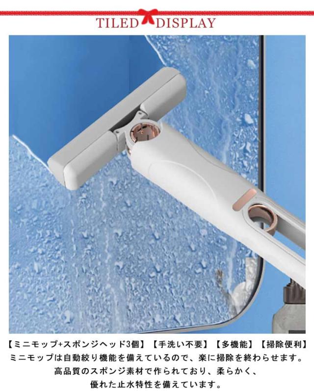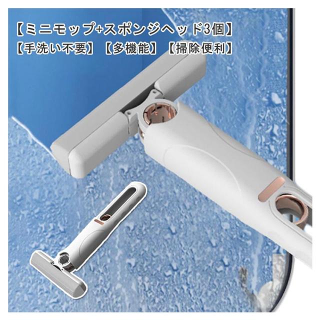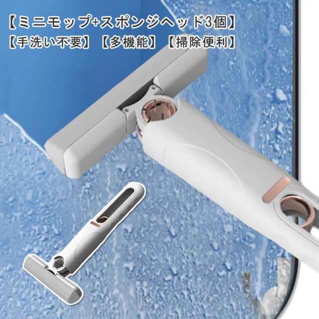 ミニモップ スポンジヘッド3個付き モップ ミニ 手洗い不要 ガラス掃除 フロアモップ スポンジ ハンディ モップ 多機能 乾湿両用 デスクトップ バスルーム 隙間 水拭きモップ 家庭用 車 テーブル キッチン 掃除便利 洗える 吸水性 送料無料