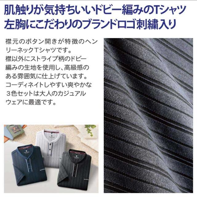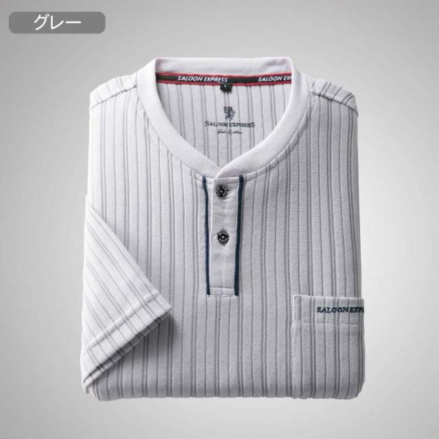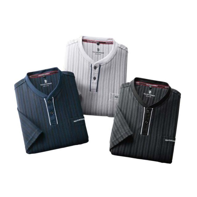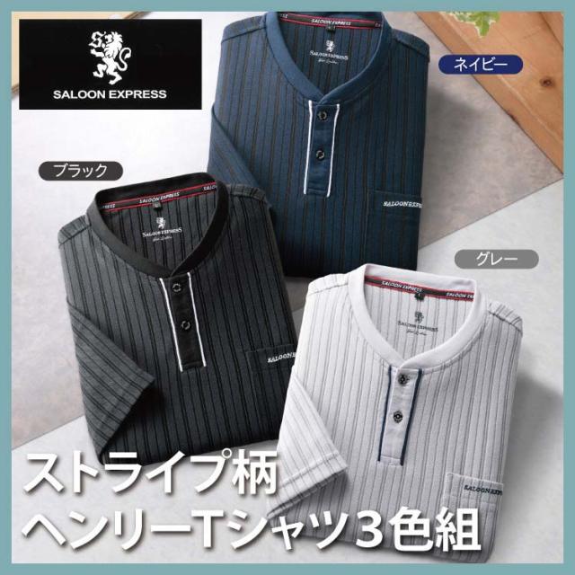 紳士服 メンズ 半袖シャツ ストライプ柄ヘンリーTシャツ 3色組 AS-0520 SALOON EXPRESS/サルーンエクスプレスSE