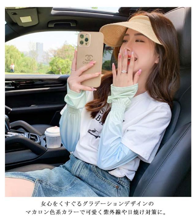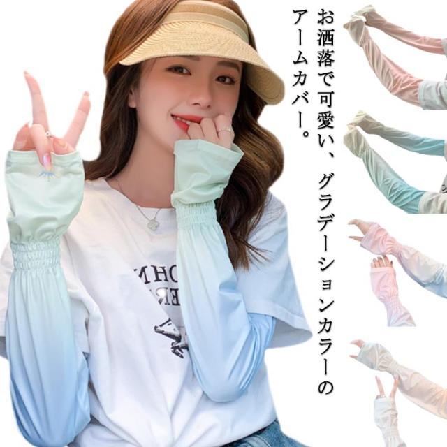 アームカバー レディース 冷感 日焼け止め UPF50+ UVカット フレア袖 ロングアームカバー ロング 手袋 吸汗速乾 腕カバー アームガード 紫外線防止 UV対策 日焼け止め グラデーション 涼しい ひんやり