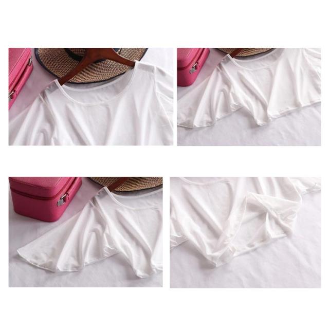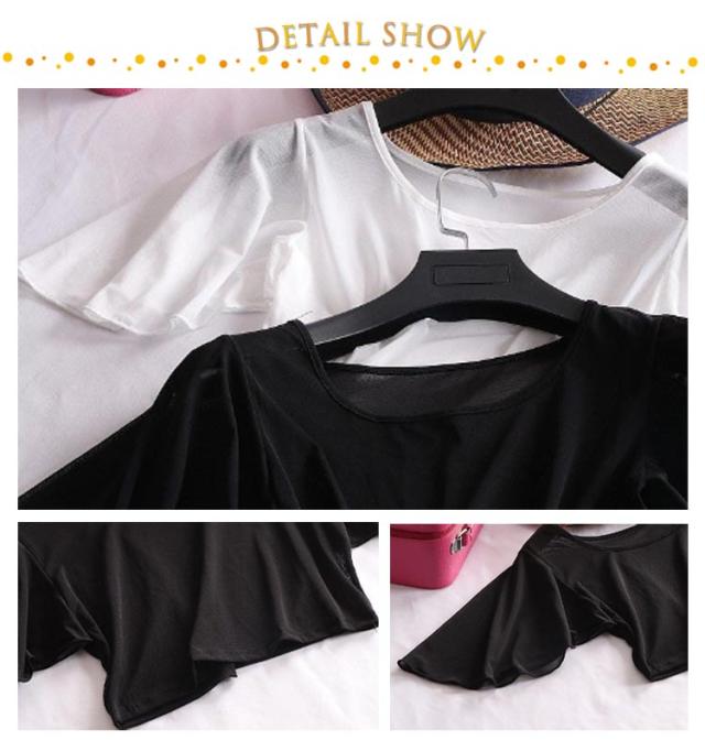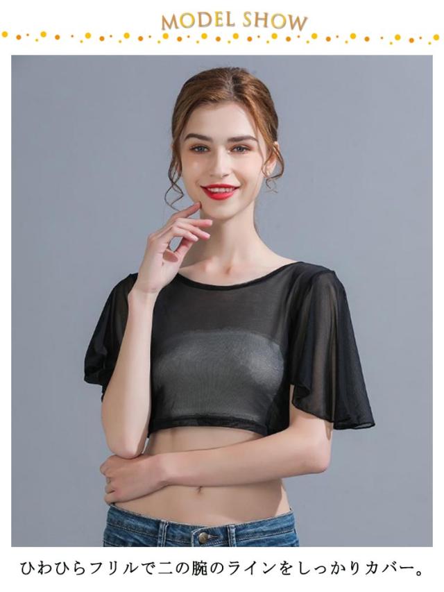| 二の腕を隠すフレアスリーブのインナートップス。 ひわひらフリルで二の腕のラインをしっかりカバー。 透け感のある素材、動く度にふわっと揺れて上品な印象に。暑い時季でも快適に着こなせます。 伸縮性のある柔らか素材で素肌にも優しい柔らかでしなやかな素材を使用。 さらっと1枚着た上に、ニットやカーディガンを羽織れば大人な雰囲気に。 | |