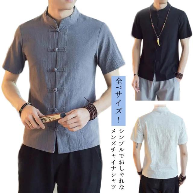 チャイナ ブラウス チャイナボタン メンズ チャイナスタイル トップス Tシャツ 前開き 綿麻シャツ 半袖 無地 夏 チャイナ服 チャイナ風 中華服 中華風 薄手 ひんやり 大きいサイズ カジュアルシャツ おしゃれ リネンシャツ 大きいサイズ シンプル 父の日 ギフト 送料無料