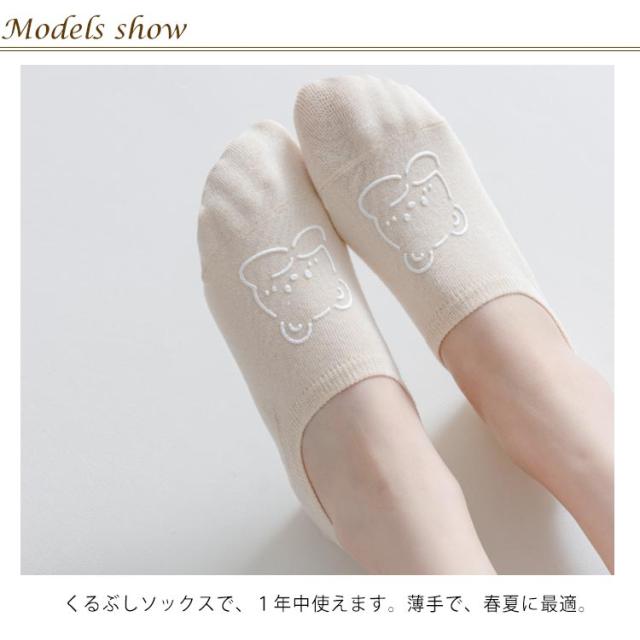 【6足セット】フットカバー クマ 靴下 ソックス 送料無料 スニーカーソックス ショート おしゃれ かわいい くつした 浅履き レディース 女性 婦人 可愛い シリコン滑り止め 通勤 通学 春夏