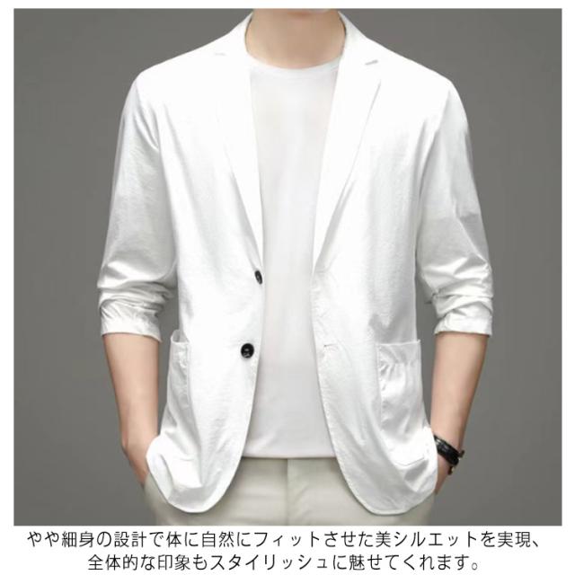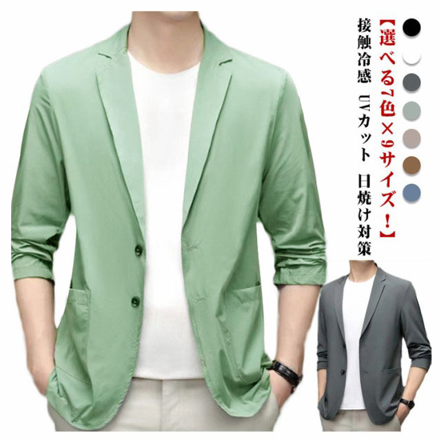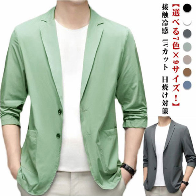 極薄 ブレザー メンズ サマージャケット 長袖 スーツジャケット 春 夏 接触冷感 UVカット 日焼け対策 アイスシルクスーツジャケット ひんやり テーラードジャケット 軽量 カーディガン 無地 冷感 アウター おしゃれ カジュアル 大きいサイズ ゴルフウェア