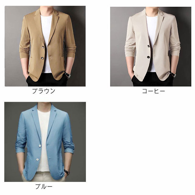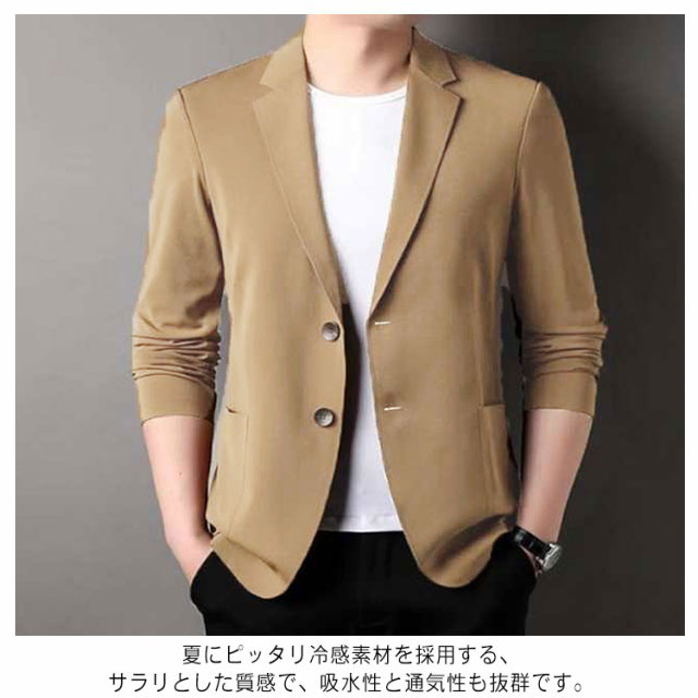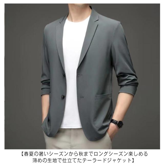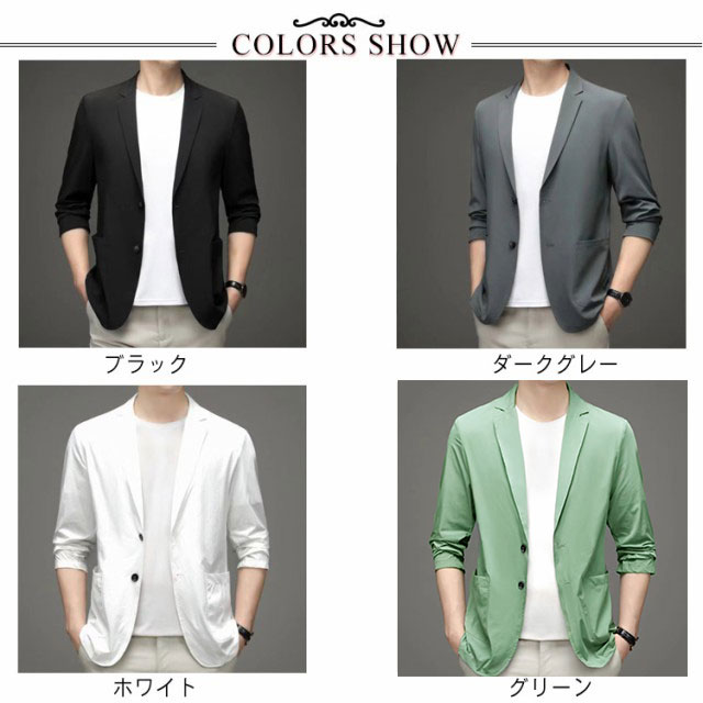 | 【選べる7色×9サイズ!】 【春夏の暑いシーズンから秋までロングシーズン楽しめる 薄めの生地で仕立てたテーラードジャケット】 やや細身の設計で体に自然にフィットさせた美シルエットを実現、全体的な印象もスタイリッシュに魅せてくれます。 夏にピッタリ冷感素材を採用する、サラリとした質感で、吸水性と通気性も抜群です。 カラーバリエーションは着まわしやすいホワイトなブラックから落ち着いた感じのグレーまで備えた魅力の7カラー展開で普段使いからビジネスまで幅広く活用していただけます。 | |