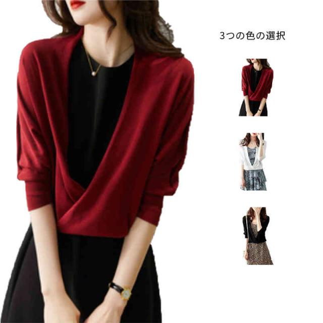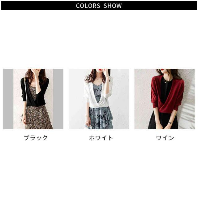 送料無料 ニット サマーニット レディース カシュクール カットソー トップス 通勤 入学 入園 卒業 卒園 きれいめ 春 夏 S/M/L/XL/2XL ブラック ホワイト ワイン