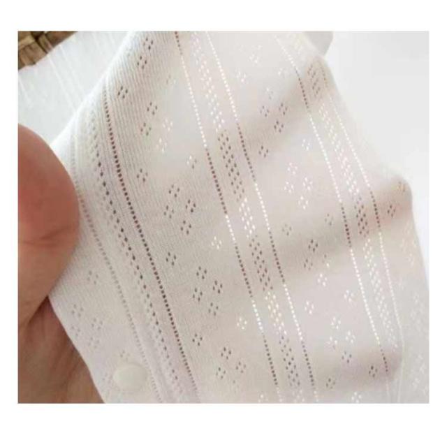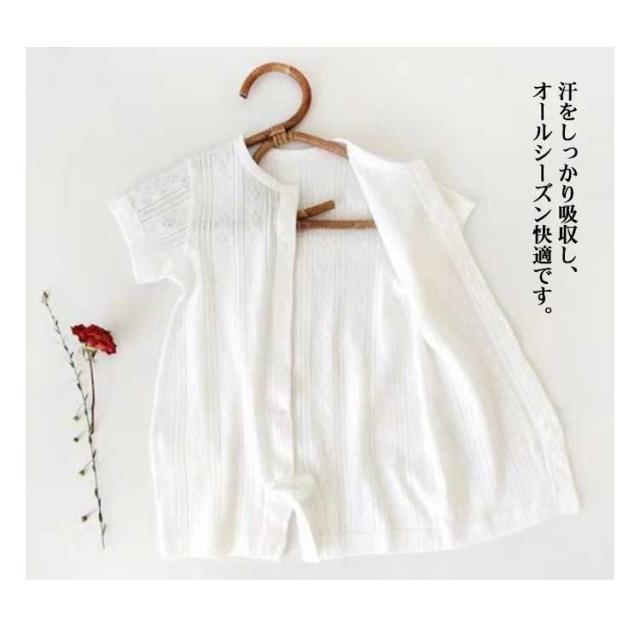 | お腹が出ないロンパース型の肌着です。 伸縮性に優れたフィット感抜群のコットン素材を使用。 汗をしっかり吸収し、オールシーズン快適です。 寝かせたままのお着替えもラクチンなボタンの前開きタイプで、 肌着としてはもちろん、お部屋着としても大活躍の人気アイテムです。 横方向によく伸びるので肌にフィットして見えない汗も良く吸収します。 | |