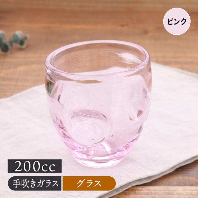 グラス 200cc リップル ピンク 手吹きガラス アウトレット タンブラー おしゃれ かわいい ビールグラス お酒グラス コップ 食前酒 一口ビール ガラス製 手作りガラス アイスコーヒー アイスティー カクテル 来客食器