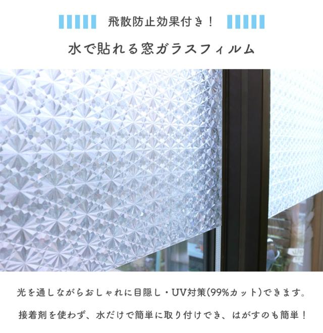 窓ガラス フィルム 窓ガラスフィルム おしゃれ 目隠し シート はがせる 窓 飛散防止 窓飾りシート GHC 92x90cm 台風対策 UVカット99% 水で貼る 光が入る プライバシー保護 採光 装飾 おしゃれ 透明 クリスタル レトロ カットガラス 日本製 送料無料