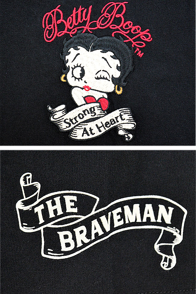 BR×BETTYコラボ 天竺半袖Tシャツ The BRAVE-MAN BBB-2341 ブレイブマン ベティーちゃん 刺繍 バイカー