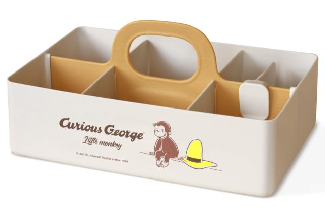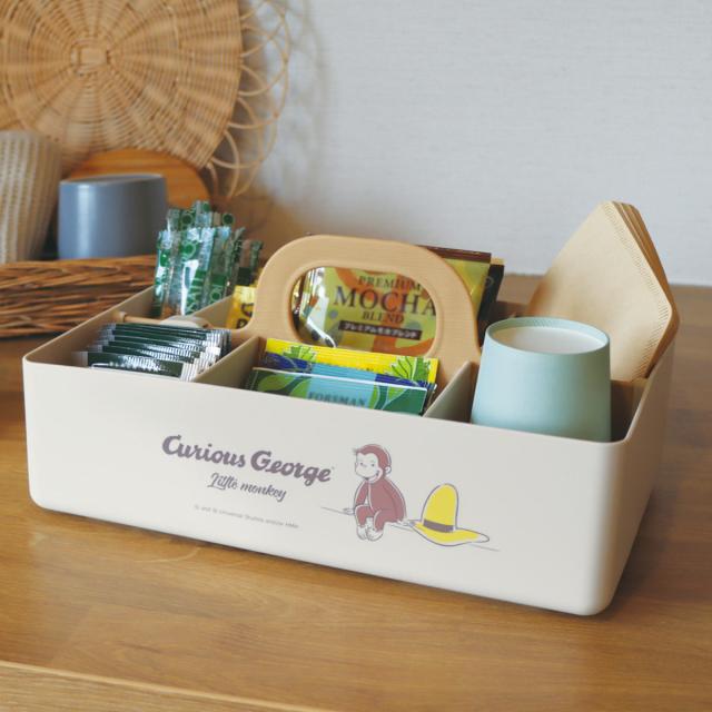 収納ボックス おさるのジョージ モッテケース 幅28×奥行18.5×高さ13.5cm ( 小物収納 ハンドル付き 収納ケース 仕切り付き 日本製 小物ケース 小物入れ スタッキング 積み重ね メイクボックス 整理 整頓 キッチン リビング )