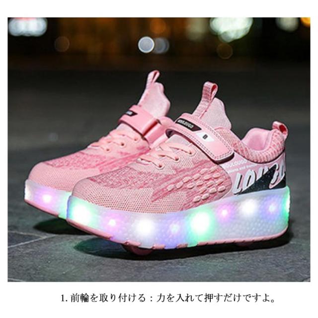 | 初心者から上級者まで幅広く対応ローラーシューズ 足元が輝き、いつものお出掛けがもっと楽しくなりそう 小型、軽量、持ち運びが簡単で、フラットシューズに無料で装着できるため、性能や組み立ての手間が省けます。 バランスが良く、体の重心をコントロールしやすく、安全に使用できます。 インラインスケートだけでなく、普通のスポーツシューズやウォーキングシューズにもお使いいただけます 使い方: 1.前輪を取り付ける:力を入れて押すだけですよ。 2.前輪を外す:配送用のスパナで軽くこじ開けたら、輪が出てきて、ふたをします。 3.後輪を置く:後輪はふたを開けて、かかとのボタンを押すと、後輪は自動的に飛び出します。 4.後輪を収めます。かかとのボタンを押し続けて、後輪を中に押してください。ふたを押せばいいです。 | |