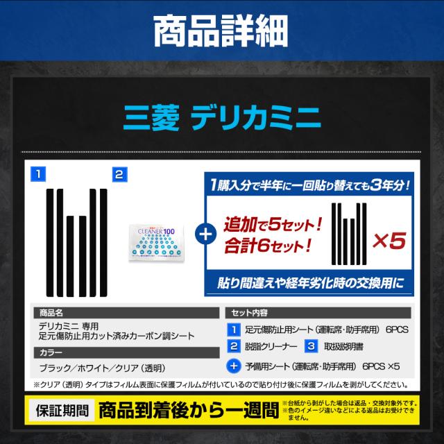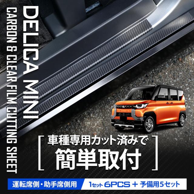 デリカミニ B34A B35A B37A B38A 足元傷防止用 カット済み カーボン調シート 6PCS × 6セット フィルム カッティング 傷防止 三菱 [5]-4