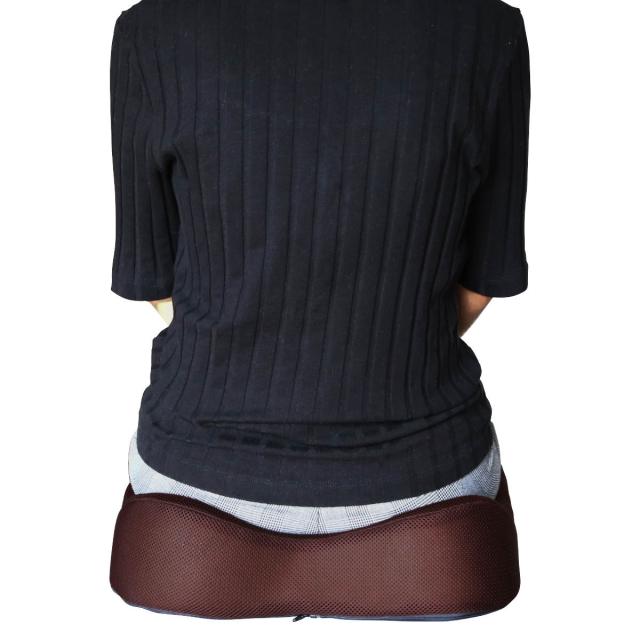 人間工学に基づいて設計されたデザインにより、座ったときにかかる背骨や腰への負担を軽減し、座り姿勢をラクにしてくれます。長時間座った姿勢が続き、姿勢の悪さが気になる方にピッタリのクッションです。