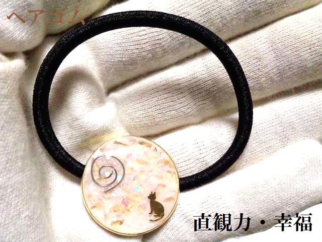 潜在能力開花・直観力・虫の知らせ・恋愛全般・インスピレーション能力・第六感・あらゆる幸福を得る★ムーンストーン・ヒマラヤ産水晶★ヘアゴム★イメージキャット★猫・ねこ・ネコ★オルゴナイト★パワーストーン★護符(霊符)