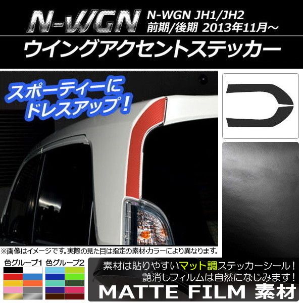 ウイングアクセントステッカー マット調 ホンダ N-WGN JH1/JH2 前期/後期 2013年11月〜 色グループ1 入数:1セット(2枚) AP-CFMT506 色グループ1: ブラック ホワイト レッド ブルー イエロー オレンジ ピンク グレー ゴールド シルバー