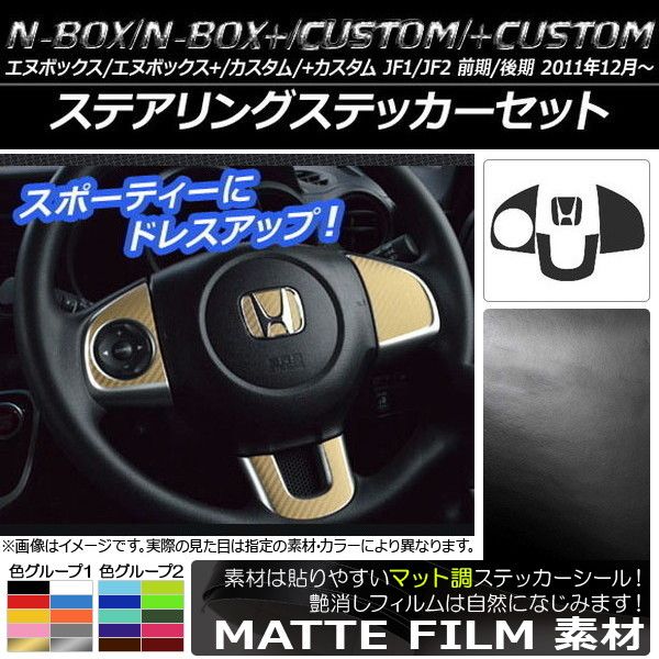 ステアリングステッカーセット マット調 ホンダ N-BOX/+/カスタム/+カスタム JF1/JF2 前期/後期 2011年12月〜 色グループ1 AP-CFMT580 色グループ1: ブラック ホワイト レッド ブルー イエロー オレンジ ピンク グレー ゴールド シルバー