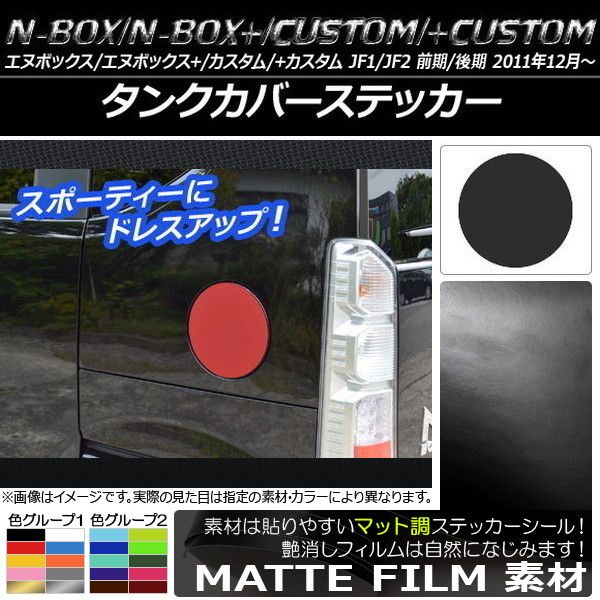 タンクカバーステッカー マット調 ホンダ N-BOX/+/カスタム/+カスタム JF1/JF2 前期/後期 2011年12月〜 色グループ1 AP-CFMT593 色グループ1: ブラック ホワイト レッド ブルー イエロー オレンジ ピンク グレー ゴールド シルバー