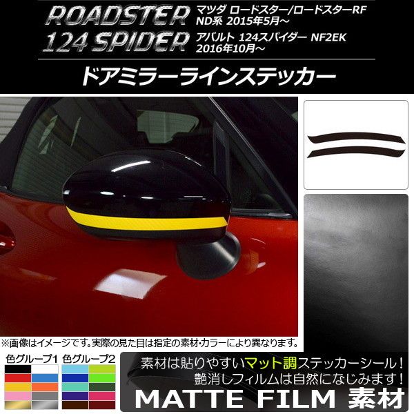 ドアミラーラインステッカー マット調 マツダ/アバルト ロードスター/RF/124スパイダー ND系/NF2EK 色グループ1 入数:1セット(2枚) AP-CFMT2414