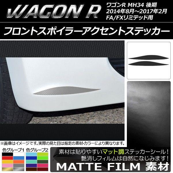 フロントスポイラーアクセントステッカー マット調 スズキ ワゴンR MH34S 後期 FA/FXリミテッド用 色グループ1 入数:1セット(2枚) AP-CFMT984