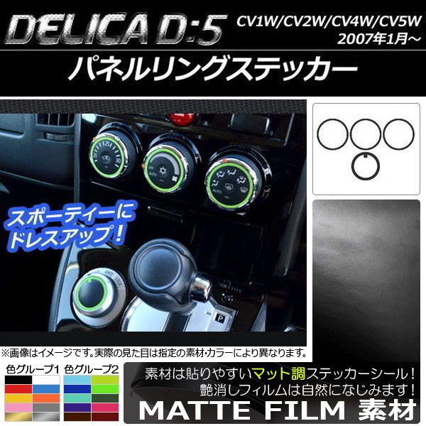 パネルリングステッカー マット調 ミツビシ デリカD:5 CV1W/CV2W/CV4W/CV5W 2007年01月〜 色グループ1 入数:1セット(4枚) AP-CFMT626 色グループ1: ブラック ホワイト レッド ブルー イエロー オレンジ ピンク グレー ゴールド シルバー