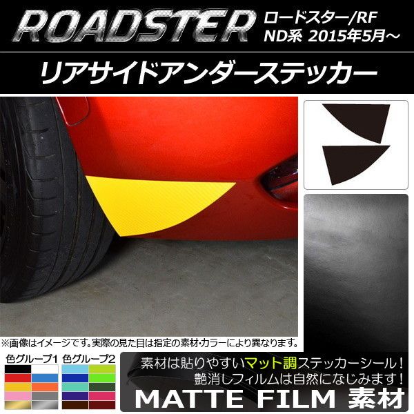 リアサイドアンダーステッカー マット調 マツダ ロードスター/ロードスターRF ND系 2015年05月〜 色グループ1 入数:1セット(2枚) AP-CFMT2429 色グループ1: ブラック ホワイト レッド ブルー イエロー オレンジ ピンク グレー ゴールド シルバー