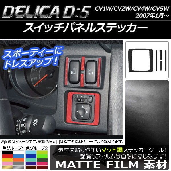 スイッチパネルステッカー マット調 ミツビシ デリカD:5 CV1W/CV2W/CV4W/CV5W 2007年1月〜 色グループ1 入数:1セット(5枚) AP-CFMT630 色グループ1: ブラック ホワイト レッド ブルー イエロー オレンジ ピンク グレー ゴールド シルバー