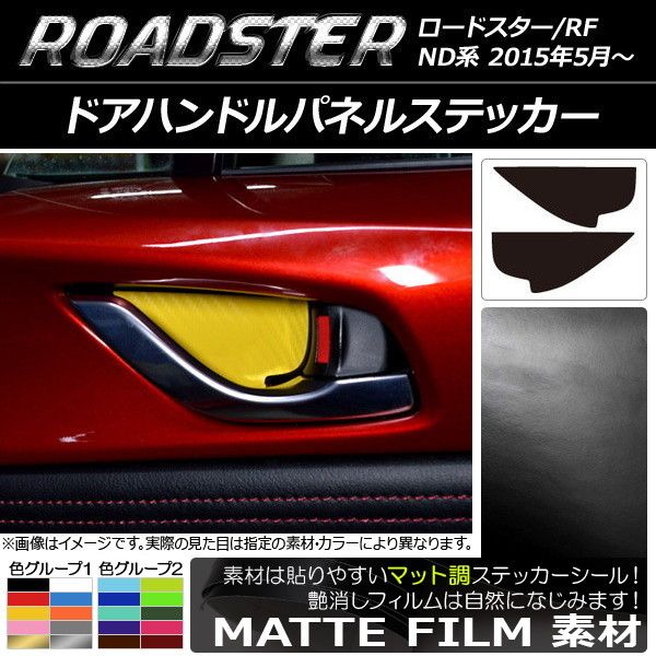 ドアハンドルパネルステッカー マット調 マツダ ロードスター/ロードスターRF ND系 2015年05月〜 色グループ1 入数:1セット(2枚) AP-CFMT2449 色グループ1: ブラック ホワイト レッド ブルー イエロー オレンジ ピンク グレー ゴールド シルバー