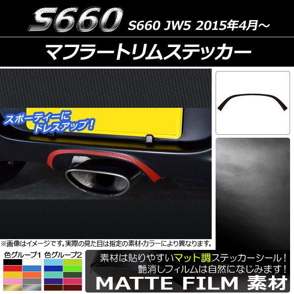 マフラートリムステッカー マット調 ホンダ S660 JW5 2015年04月〜 色グループ1 AP-CFMT1981 色グループ1: ブラック ホワイト レッド ブルー イエロー オレンジ ピンク グレー ゴールド シルバー
