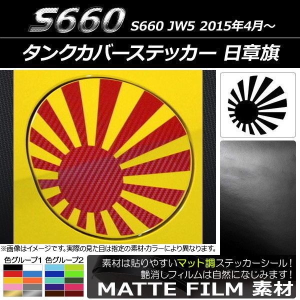 タンクカバーステッカー マット調 日章旗 ホンダ S660 JW5 2015年04月〜 色グループ1 AP-CFMT2033 色グループ1: ブラック ホワイト レッド ブルー イエロー オレンジ ピンク グレー ゴールド シルバー