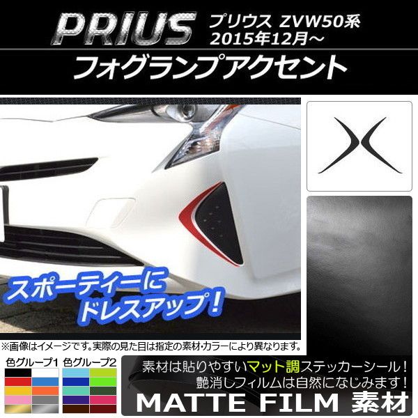 フォグランプアクセントステッカー マット調 トヨタ プリウス ZVW50,ZVW51,ZVW55 2015年12月〜 色グループ1 入数:1セット(2枚) AP-CFMT279 色グループ1: ブラック ホワイト レッド ブルー イエロー オレンジ ピンク グレー ゴールド シルバー