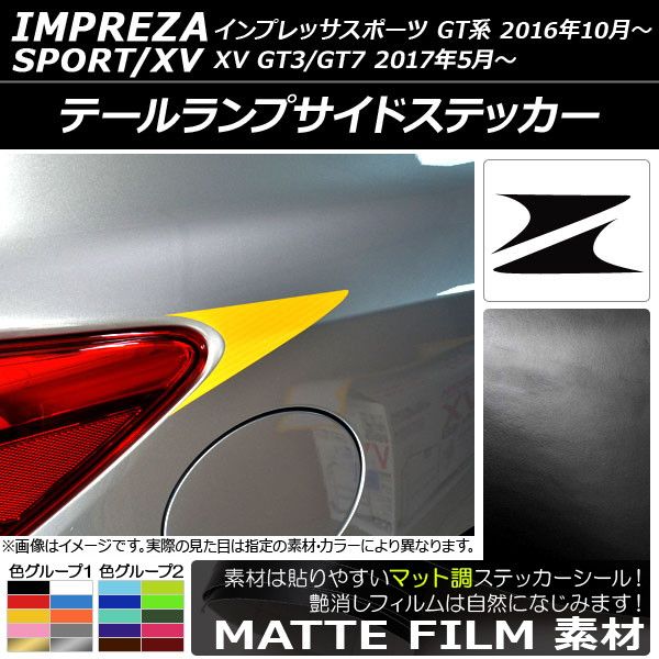テールランプサイドステッカー マット調 スバル インプレッサスポーツ/XV GT系 2016年10月〜 色グループ1 入数:1セット(2枚) AP-CFMT2079 色グループ1: ブラック ホワイト レッド ブルー イエロー オレンジ ピンク グレー ゴールド シルバー