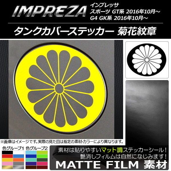 タンクカバーステッカー マット調 菊花紋章 スバル インプレッサ スポーツ/G4 GT/GK系 2016年10月〜 色グループ1 AP-CFMT2155 色グループ1: ブラック ホワイト レッド ブルー イエロー オレンジ ピンク グレー ゴールド シルバー