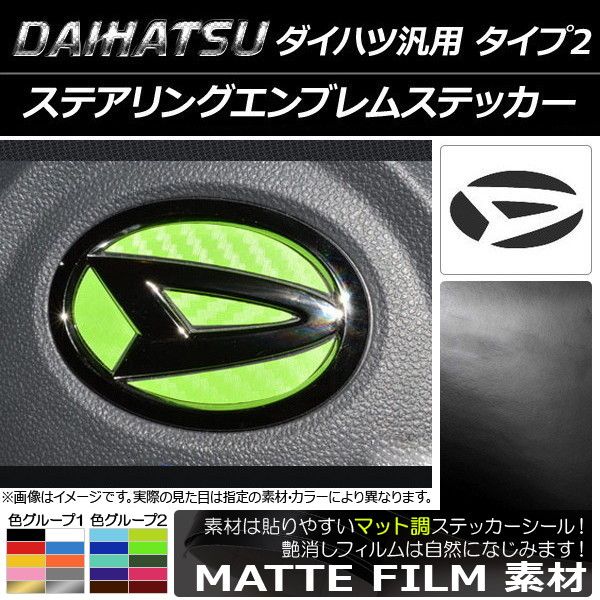 ステアリングエンブレムステッカー マット調 ダイハツ汎用 タイプ2 色グループ2 AP-CFMT1010