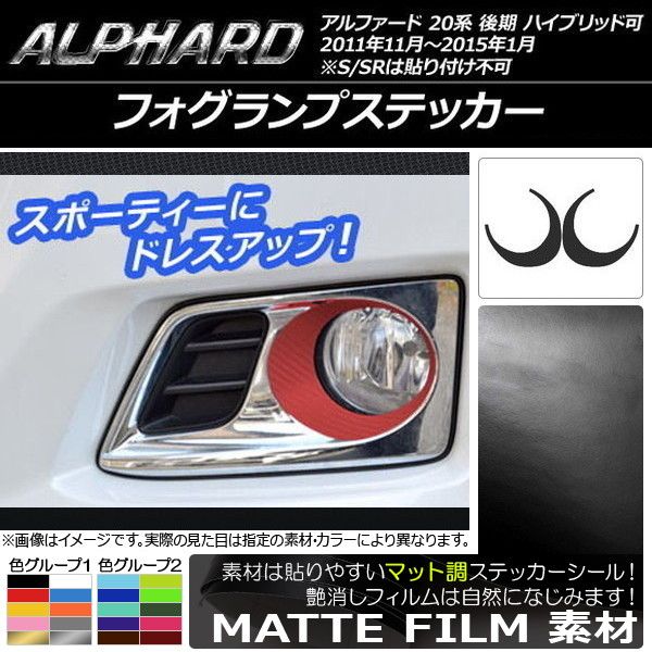 フォグランプステッカー マット調 トヨタ アルファード 20系 後期 ハイブリッド可 色グループ1 入数:1セット(2枚) AP-CFMT754
