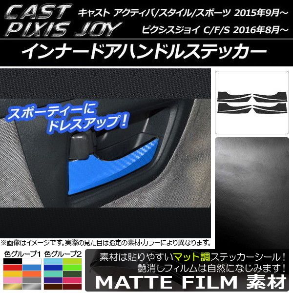 インナードアハンドルステッカー マット調 キャスト アクティバ/スタイル/スポーツ / ピクシスジョイ C/F/S 色グループ1 入数:1セット(8枚) AP-CFMT799 色グループ1: ブラック ホワイト レッド ブルー イエロー オレンジ ピンク グレー ゴールド シルバー