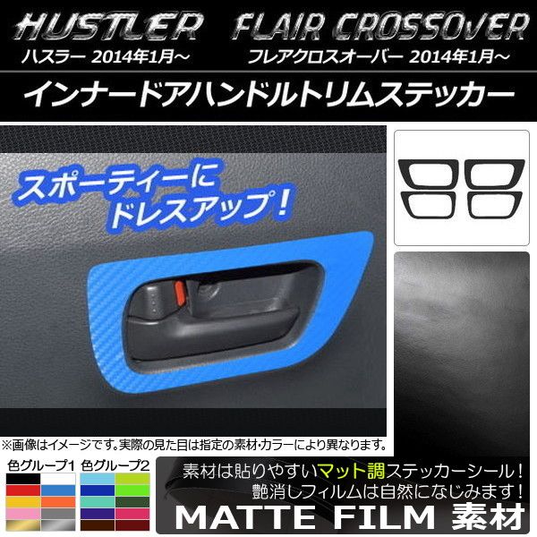 インナードアハンドルトリムステッカー マット調 ハスラー MR31S/MR41S / フレアクロスオーバー MS31S/MS41S 色グループ1 入数:1セット(4枚) AP-CFMT864 色グループ1: ブラック ホワイト レッド ブルー イエロー オレンジ ピンク グレー ゴールド シルバー