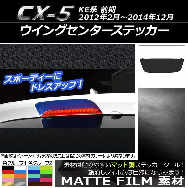 ウイングセンターステッカー マット調 マツダ CX-5 KE系 前期 2012年02月〜2014年12月 色グループ1 AP-CFMT454 色グループ1: ブラック ホワイト レッド ブルー イエロー オレンジ ピンク グレー ゴールド シルバー