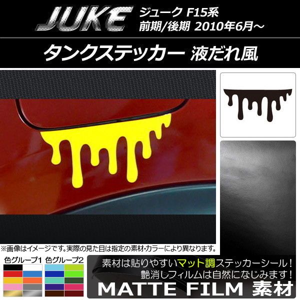 タンクステッカー マット調 液だれ風 ニッサン ジューク F15系 前期/後期 色グループ1 AP-CFMT1846 色グループ1: ブラック ホワイト レッド ブルー イエロー オレンジ ピンク グレー ゴールド シルバー