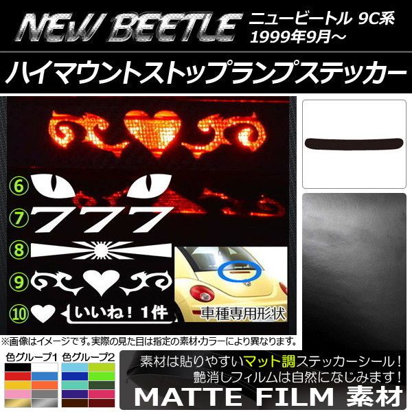 ハイマウントストップランプステッカー マット調 フォルクスワーゲン ニュービートル 9C系 色グループ1 タイプグループ2 AP-CFMT229 色グループ1: ブラック ホワイト レッド ブルー イエロー オレンジ ピンク グレー ゴールド シルバー