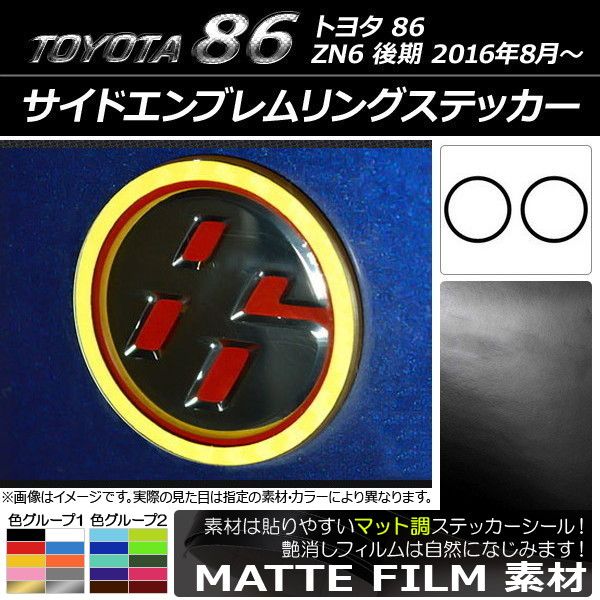 サイドエンブレムリングステッカー マット調 トヨタ 86 ZN6 後期 2016年08月〜 色グループ1 入数:1セット(2枚) AP-CFMT2297 色グループ1: ブラック ホワイト レッド ブルー イエロー オレンジ ピンク グレー ゴールド シルバー